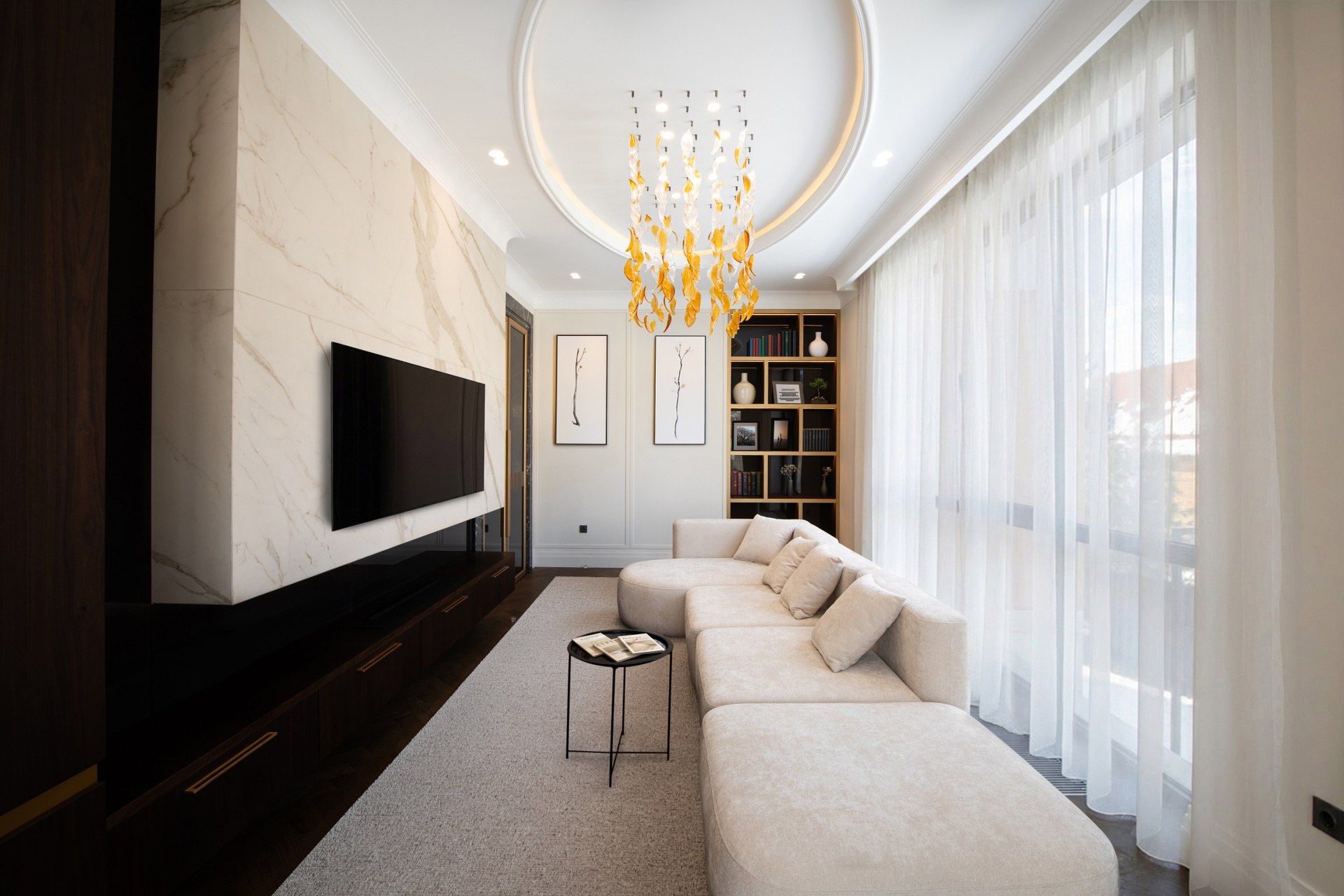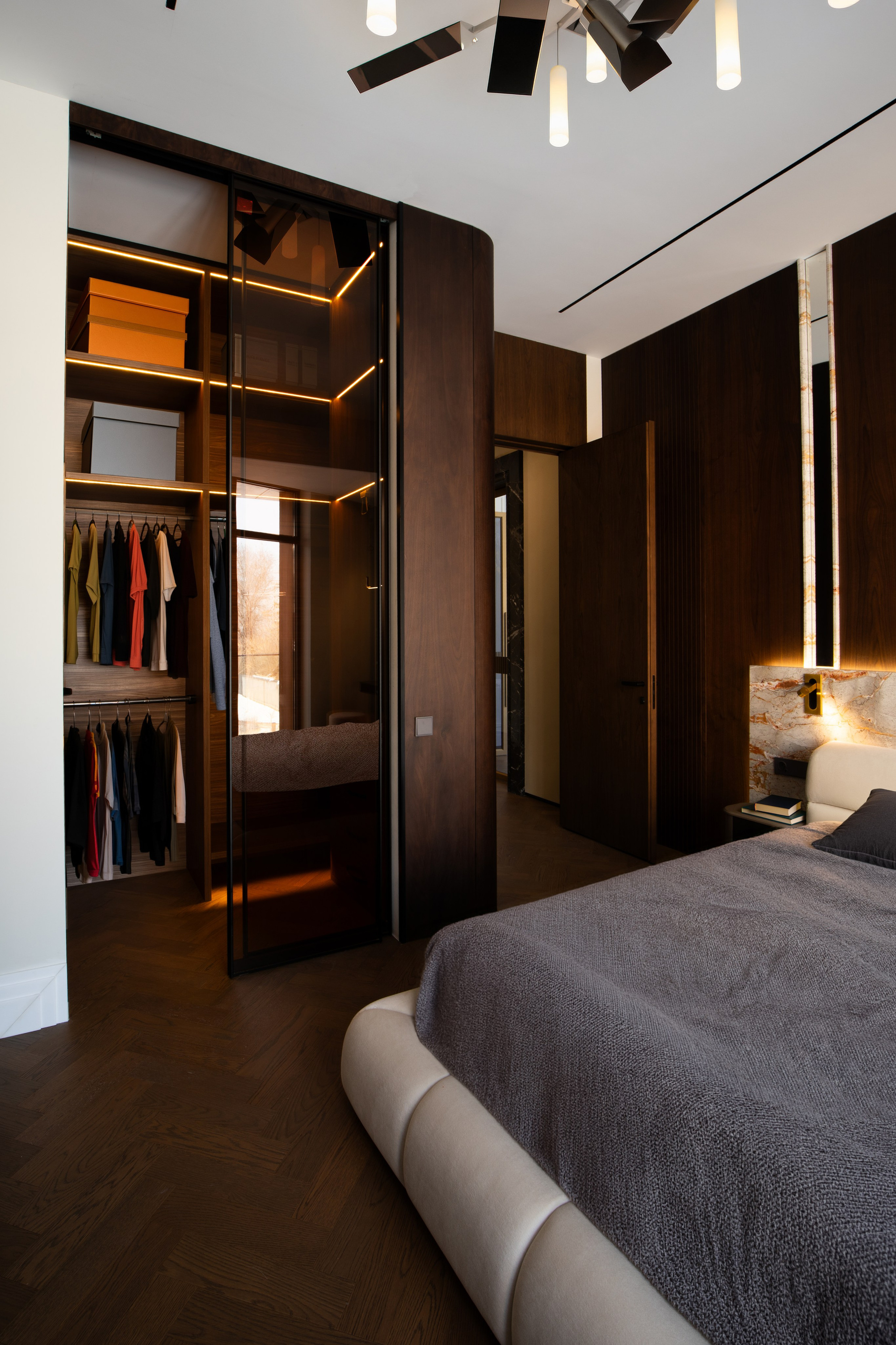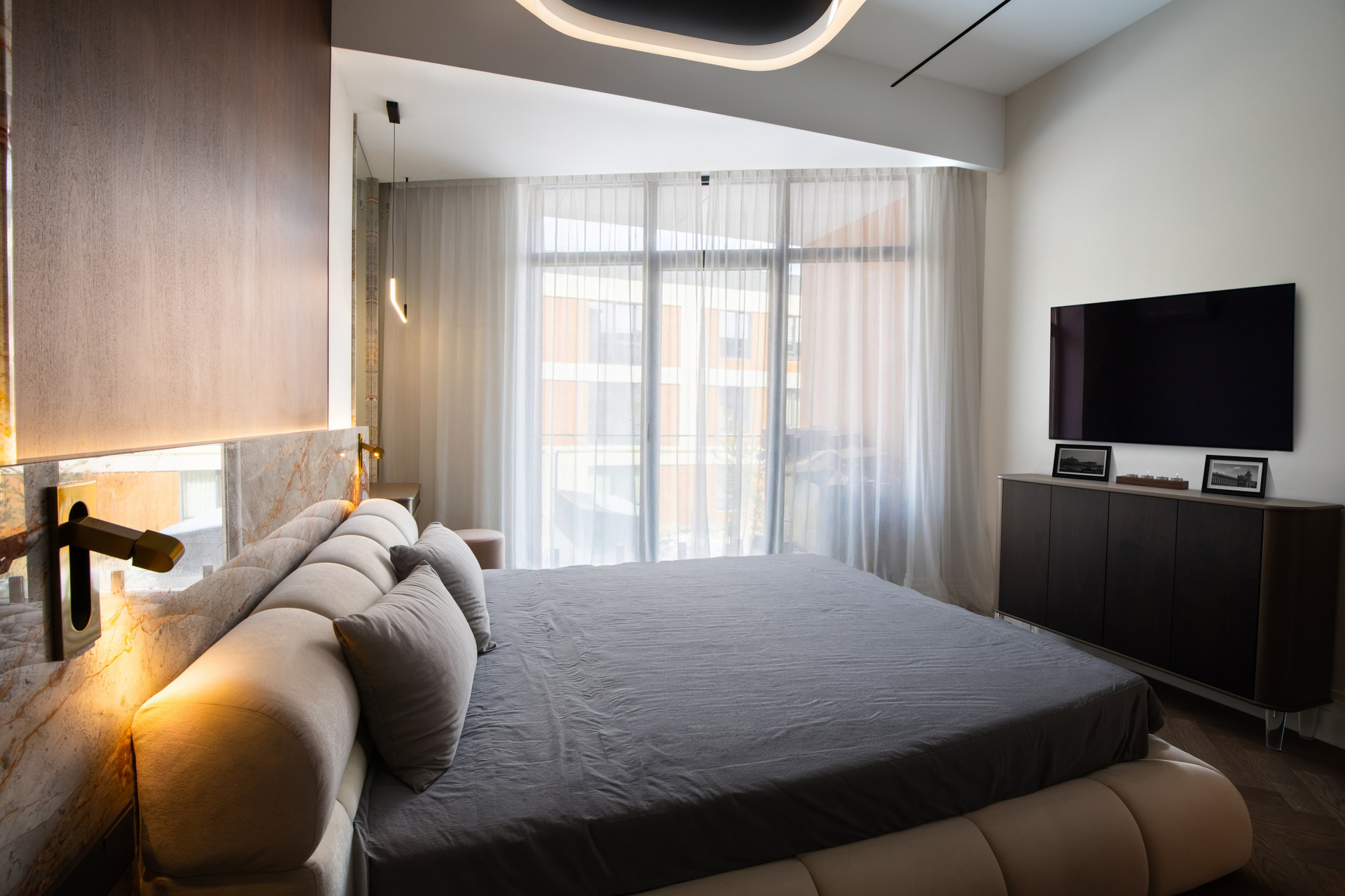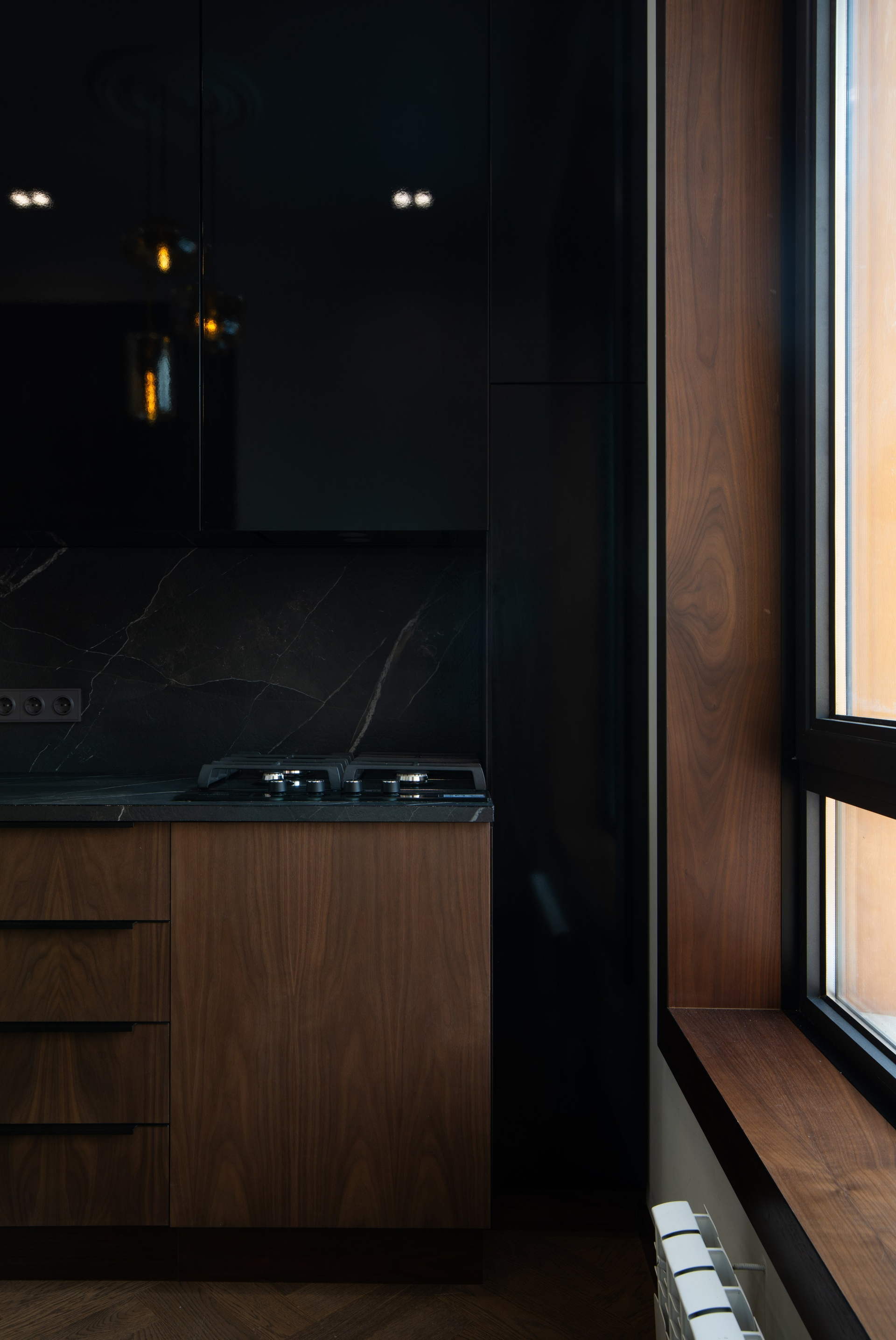 Съёмка деталей интерьера и дизайнерских решений крупным и общим планом. Естественное освещение апартаментов.